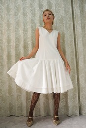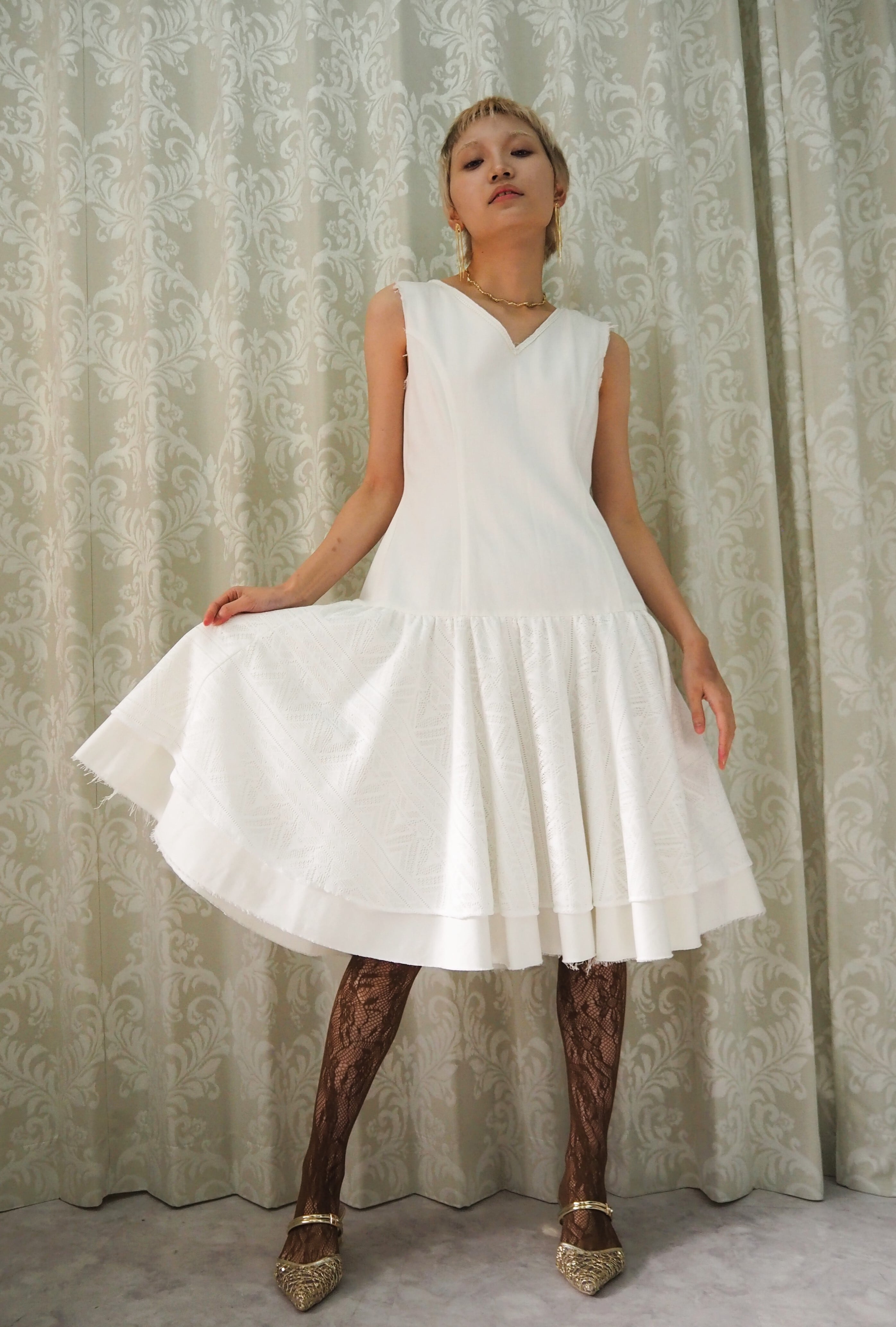 《vivezlacroy》MD-24は、ひろがるシルエットが魅力のサーキュラースカートワンピースです。ウエストから広がるスカートが、優雅でエレガントな印象を与えます。